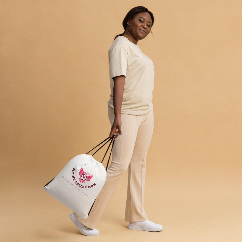 Flying Soccer Mom - Drawstring bag